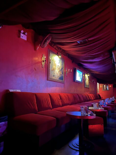 ネオンが光る街を抜けてお店に入ると、体に響くような音楽と人々の熱気。