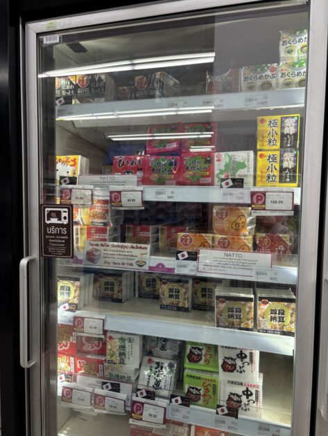 そんな中で面白かったのが、納豆の専用冷蔵庫があったこと。しっかり「納豆コーナー」として管理されていて、日本人向け需要の高さを感じます。種類も意外と豊富で、海外にいながらこの光景を見るのは少し不思議でした。