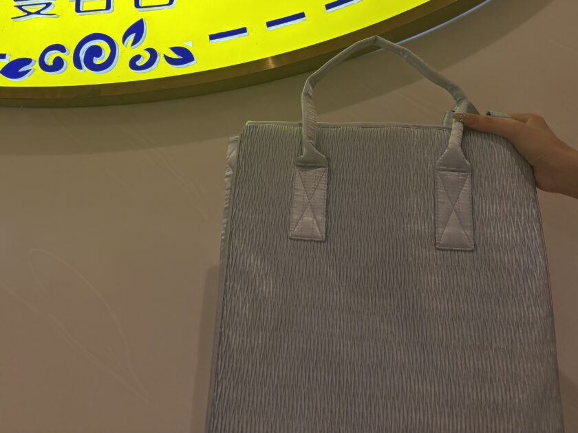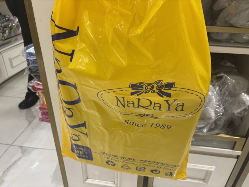 私が買ったのは 水色のバッグ(750バーツ=約3000円)。色味が綺麗で、デザインも可愛くて一目惚れでした。日本だとこういう色味のバッグはなかなか見ないので、街歩き用にも旅行用にもぴったりだと思います。ナラヤには同じ形でも色違い、柄違いがたくさんあって、選ぶのがすごく楽しかったです。