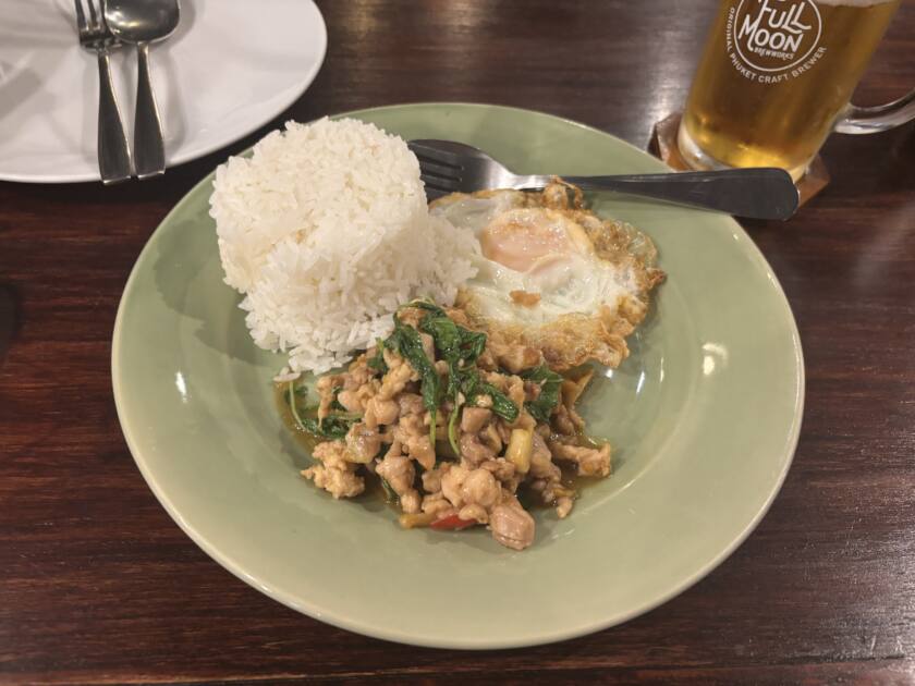私はガパオライスを注文🍳🌶️ ひと口食べて「めっちゃ美味しい!」と素直に思いました。お肉の旨みとバジルの香りがしっかりしていて、本場の味という感じ。ただ、注文時に“ No spicy ”と伝えたのに…普通に辛い!!🔥💦 タイ基準の“辛くない”はやっぱり辛いみたいです(笑)。辛いのが本当に苦手な人は、Noでも少し覚悟が必要かもしれません。