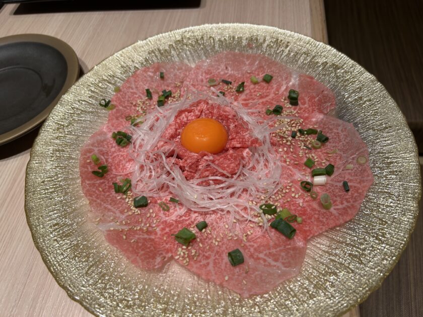 次にいただいたのは「極みユッケ」。名前の通り、素材の良さが際立つ一品で、お肉の旨みがダイレクトに伝わってきました。様々な大きさにカットされており付いてくる卵黄とタラに絡めていただきます✨余計なクセがなく、とろけるような食感が印象的です。シンプルな味付けだからこそ、ユッケ本来のおいしさを存分に楽しめました。