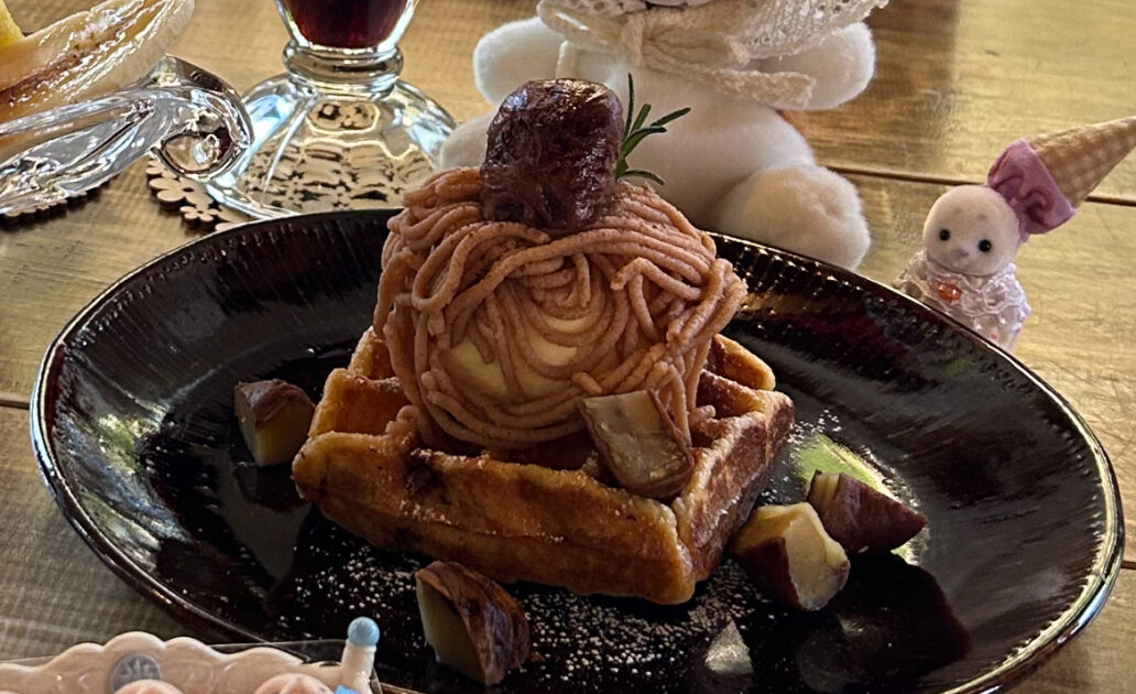 甘味と香ばしさがちょうど良いワッフルの上に、栗の風味がしっかり感じられるモンブランクリームがたっぷりのっていて、見た目からして贅沢です!