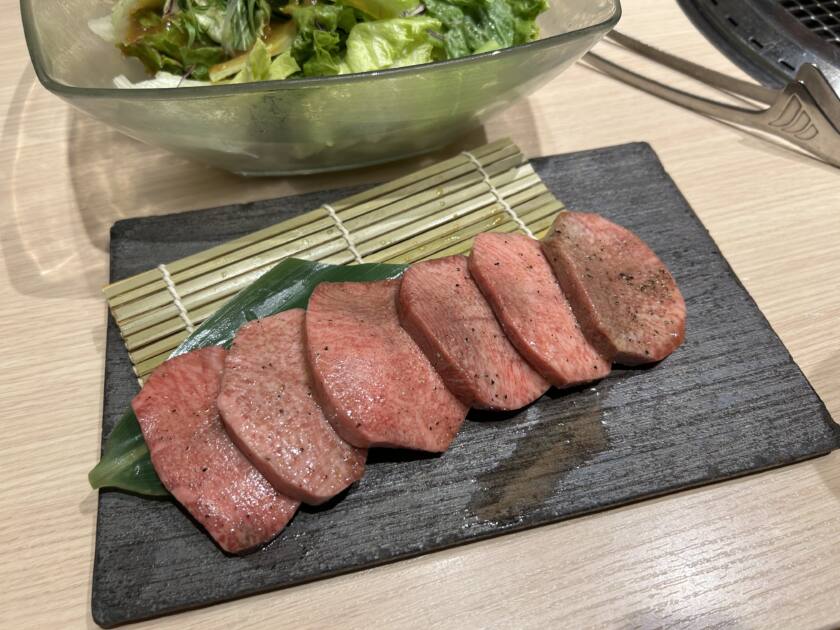 そして焼肉といえばやっぱりタン!ということで、塩タンもいただきました🐮🔥 焼き始めると香ばしい香りが広がって、それだけで食欲がぐっと高まります。焼き上がった塩タンはほどよい塩加減で、お肉の旨みがしっかり感じられてとても美味しかったです。さっぱりしているので、ついつい何枚でも食べたくなるような美味しさでした✨