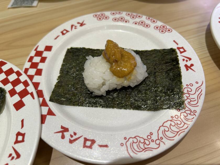 続いていただいたのはウニです🌊 お皿が届いた瞬間からちょっと贅沢な気分になりますよね。一口食べると、ウニの濃厚な旨みが口の中に広がって、とろけるような食感がとても美味しかったです。回転寿司でも気軽にウニを楽しめるのは嬉しいポイントだなと思いました😊