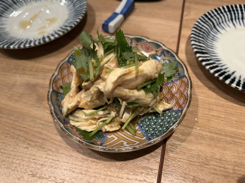 こちらはとてもシンプルな一品ですが、その分素材の良さがしっかり感じられます。しっとりとしたささみは柔らかく、わさびのツンとした辛さと醤油のコクが絶妙にマッチ✨ さっぱりしているのにしっかり満足感があり、箸がどんどん進んでしまいます。重たい料理の合間の口直しにもぴったりで、ジャスミンハイとの相性も抜群でした🌿