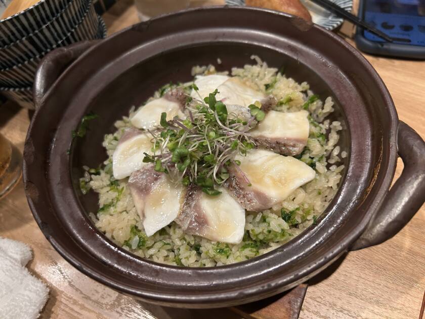 まずは「真鯛と生海苔の土鍋ご飯」🍚